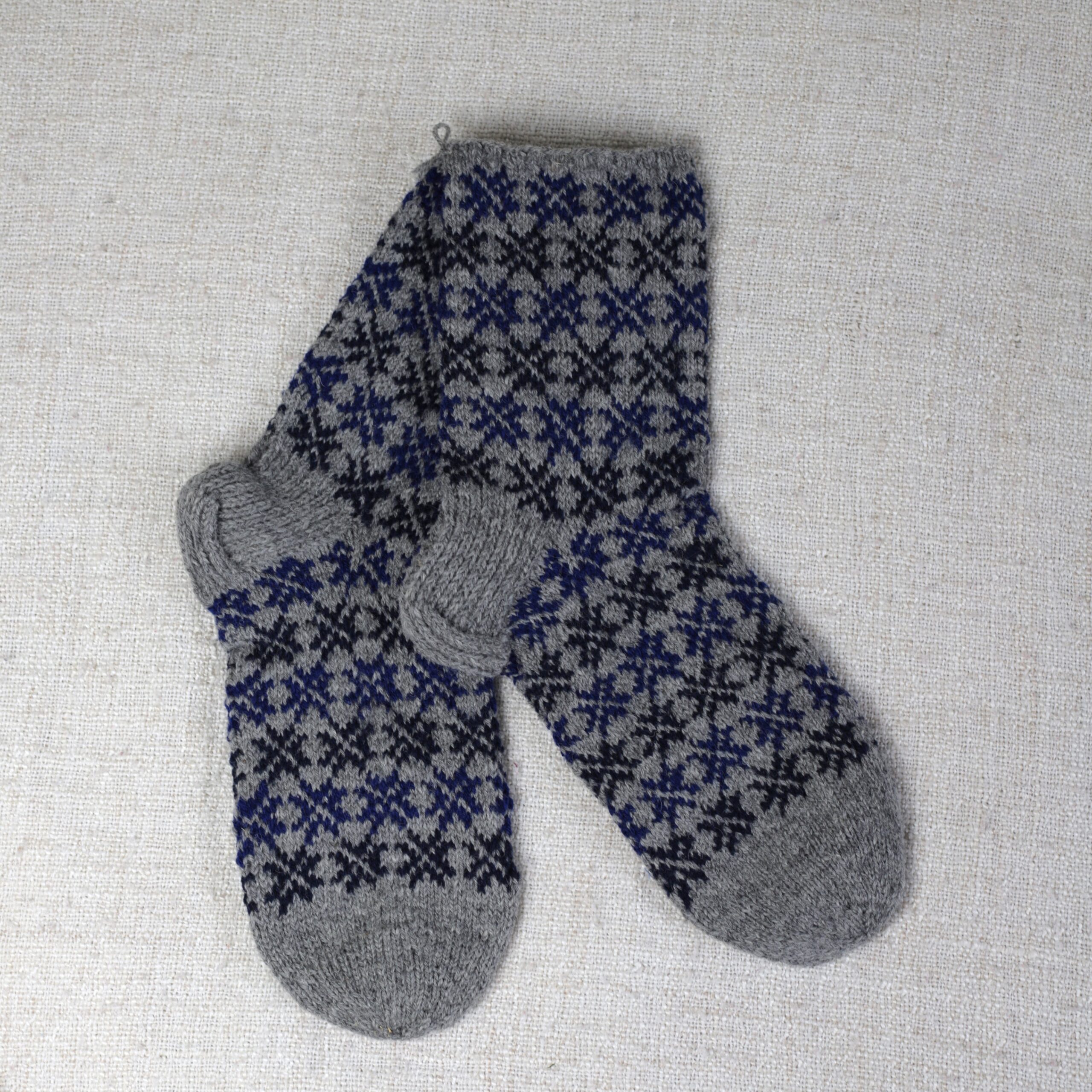 Käsitsi kootud villased mustrilised sokid. Suurus nr. 46. Sokid on venivad seega on suurused orienteeruvad, mõõdetud venitamata. Kolmekordne lõng.