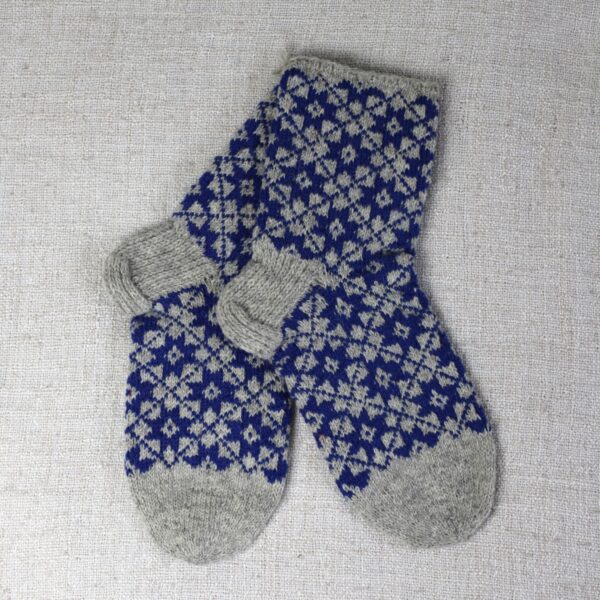 Käsitsi kootud villased mustrilised sokid. Suurus nr. 44. Sokid on venivad seega on suurused orienteeruvad, mõõdetud venitamata. Kolmekordne lõng.