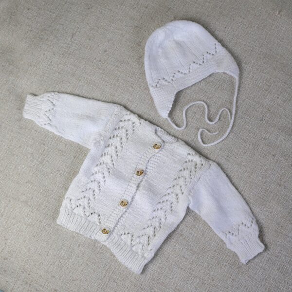 Pehme kootud kampsun ja müts.